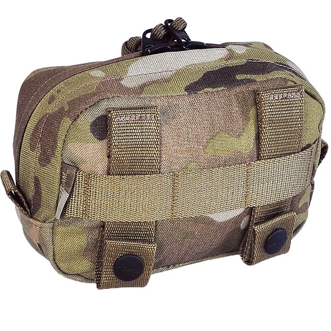 Zubehörtasche horizontal mit weit zu öffnendem Reißverschluss, Klettstreifen für Namensschild und MOLLE-Druckknopf-System.