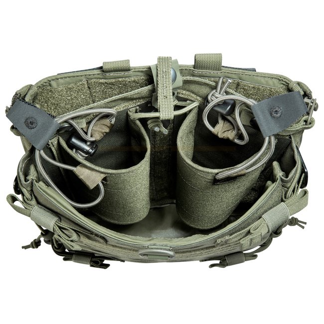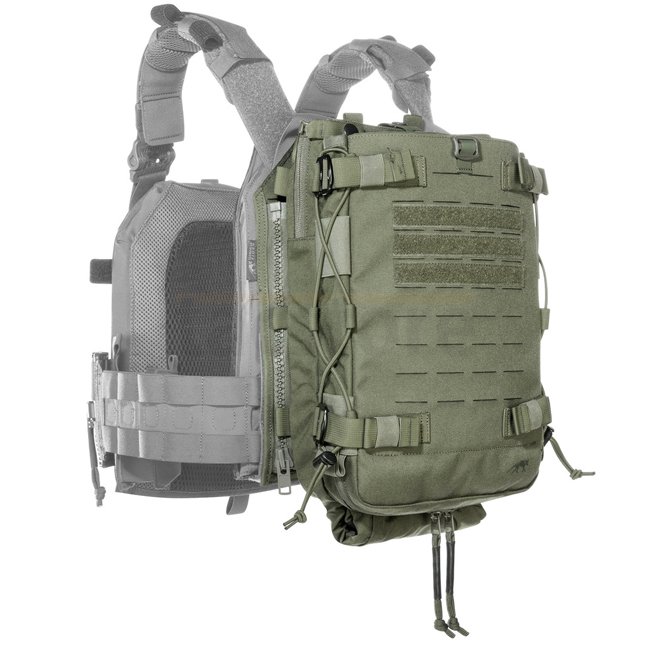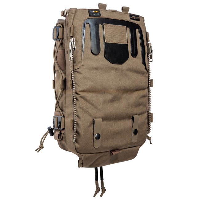 Der TT Tool Pack ZP IRR ist konzipiert für den TT Plate Carrier QR LC ZP IRR, die Befestigung erfolgt über seitliche Reißverschlüsse. Der Pack kann auch auf anderen am Markt befindlichen Plattenträgern mit entsprechender Reißverschlusslänge und -breite montiert werden. Zudem besteht durch den mitgelieferten Reißverschluss-MOLLE-Streifen die Möglichkeit, ihn auf Plattenträgern mit demselben MOLLE-Schema wie Artikel 7504 zu befestigen. Zur Befestigung an klassischen MOLLE-Bändern liegt ein zusätzlicher Adapter bei. Das ausklappbare Hauptfach ist für Bolzenschneider bis zu einer Länge von 80 cm geeignet, das ausklappbare Frontfach nimmt verschiedenes Einstiegswerkzeug auf, die einkgekletteten Röhren können auch herausgenommen werden. Außerdem verfügt der Pack an den Seiten über Einsteckmöglichkeiten für Breachpens. Auf der Front befindet sich MOLLE in Lasercut-Ausführung, die elastische Seitenkompression kann abgenommen werden.