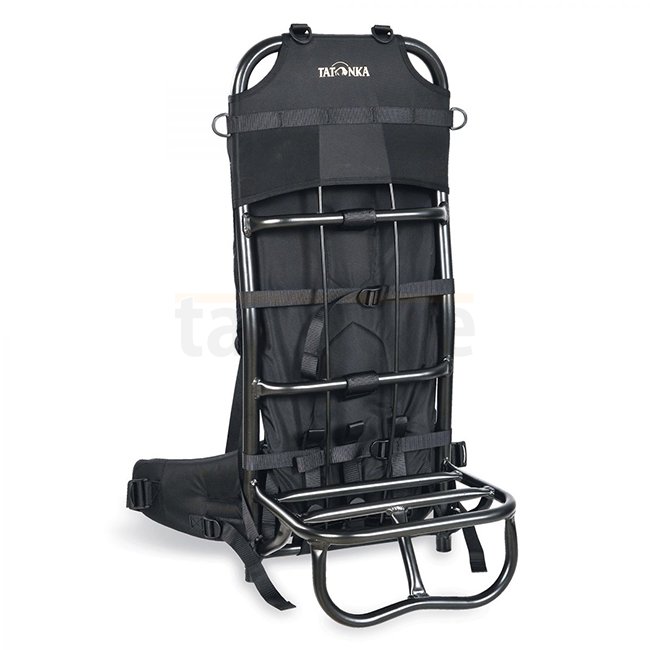 Die Rohre des Hauptrahmens besitzen einen Durchmesser von 24 mm, die des Quergestells 20 mm. Mit insgesamt vier Querfachverstrebungen im Hauptrahmen ist Stabilität garantiert. Gut gepolstert als Schutz gegen Druckstellen sind der einteilige versteifte Hüftgurt und die Tragegurte. Sicheren Stand – selbst in unebenem Gelände – ermöglicht ein Standfuß, der auch zusätzliche Befestigungsmöglichkeiten bietet.