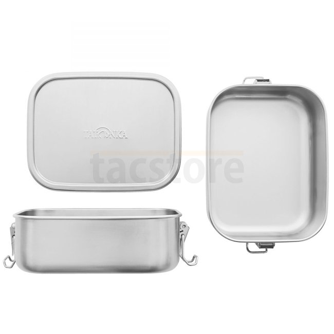 Die Tatonka Lunch Box eignet sich ideal für Kindergarten, Schule, Job und Reise. Sie besteht aus rostfreiem Edelstahl und ist lebensmittelecht, resistent gegen Fruchtsäuren, schadstofffrei, unzerbrechlich und langlebig. Der Deckel schließt fest mit Clip-Verschlüssen. Maße: 17 x 13,3 x 6 cm.