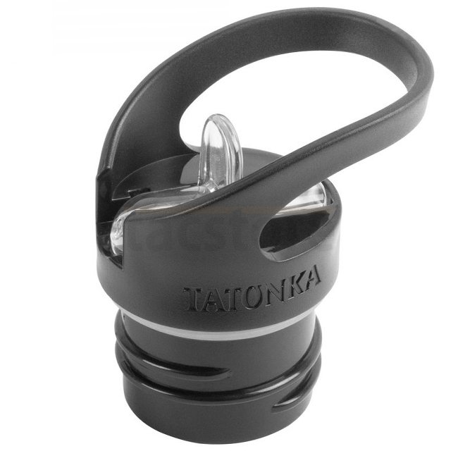 Kunststoffdeckel mit einklappbarem Mundstück. Ruckzuck trinken kann man dank dieses Ersatz- oder Zweitdeckels für die Steel Bottle Premium (Art. 4191, 4192, 4193). Die große Öse ermöglicht mithilfe eines Karabiners auch die Befestigung am Rucksack.