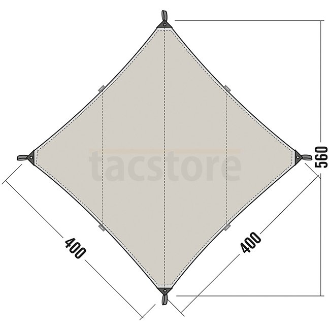 Das Tarp 3 TC bietet sich insbesondere für den Einsatz in warmen Regionen an, da das Material auch unter starker Sonneneinstrahlung eine sehr gute UV-Stabilität bietet. Die Diagonale als Firstlinie über eine Schnur gelegt, lässt es sich dank der bogenförmig geschnittenen Kanten elegant abspannen. Der Baumwollanteil des Gewebes quillt bei Nässe auf und macht das Tarp wasserabweisend.