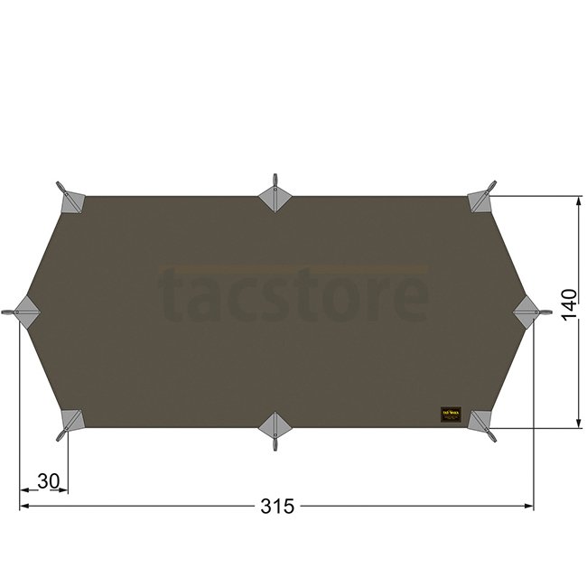 Der Zeltersatz für Minimalisten ist aus silikonbeschichtetem, hoch reißfestem Nylon-Ripstop-Material mit 20 Denier Faserstärke gefertigt. Das Tarp besitzt die Maße 315 x 140 cm.