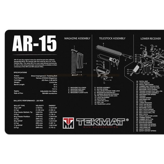 Diese TekMat Reinigungs- & Reparaturmatte - AR15 ist eine vielseitige Wahl für die Waffenwartung oder -ausstellung, sowie als allgemeine Arbeitsunterlage oder für den Schreibtisch. Mit einer schlanken Dicke von nur 3mm und den Maßen 90 x 30cm bietet sie P
