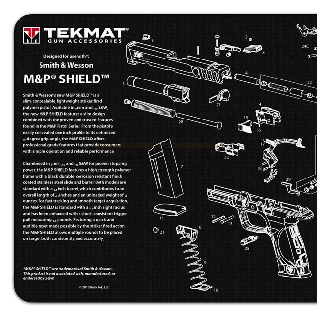 TekMat Reinigungs- & Reparaturmatte - S&W M&P Shield: Mehrzweckmatte mit schlanker 3mm Dicke. Ideal für Waffenwartung, Ausstellung, Arbeit oder Schreibtischnutzung. Maße: 43 x 28cm.