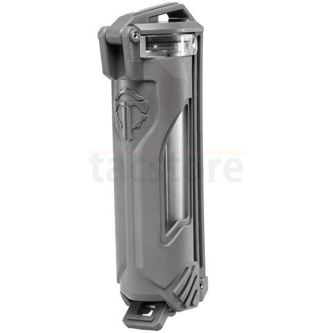 THYRM CellVault-18 Batteriespeicher - Grau. Hält 1x 18650 oder 2x 18350 wiederaufladbare Batterien. Wasserdichter O-Ring-Dichtung, bewertet mit IPX7 bei 2 Metern für 30+ Minuten. Faltbarer Metallverschluss für einfache Installation. Silikon-Schaumstoßdämp