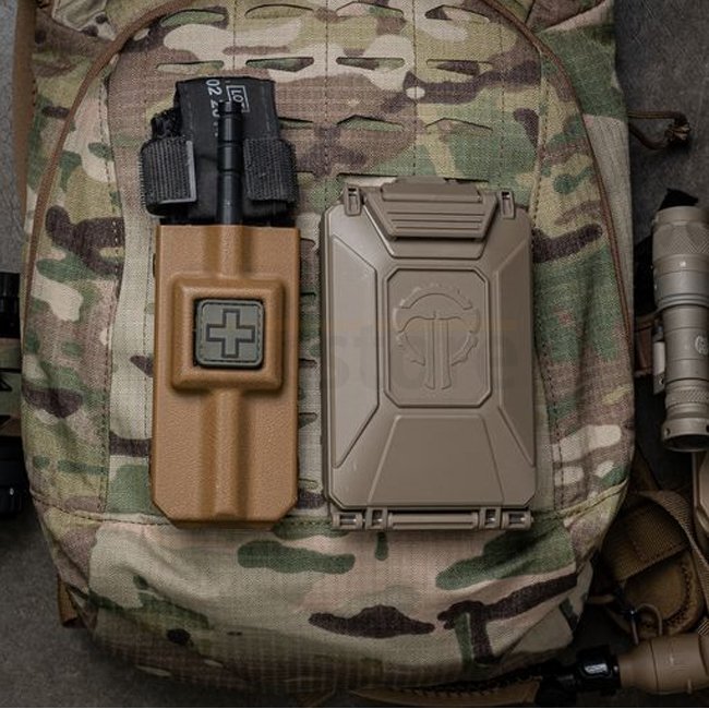 THYRM CellVault-5M Modulare Batterieaufbewahrung - Orange. Wasserdichtes, modulares Design für verschiedene Batteriegrößen. Integrierte Riemen zur Befestigung an MOLLE. Langlebige Polymerkonstruktion.