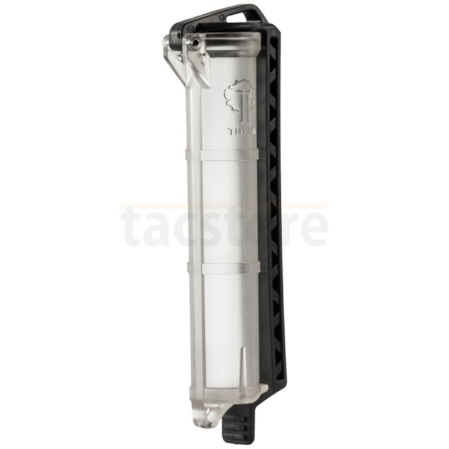 Kompakter und vielseitiger THYRM CellVault Batteriespeicherbehälter. Ideal zur Aufbewahrung von Batterien, Überlebensausrüstung, Erste-Hilfe-Materialien, Verbrauchsmaterialien, kleinen Wertsachen und mehr. Abmessungen: 12,95 x 2,8 x 3,3 cm. Gewicht: 45g.