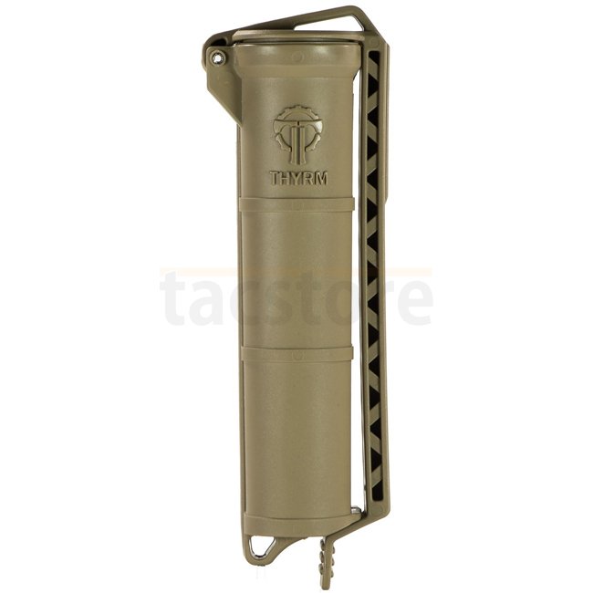 Kompakter THYRM CellVault XL Batteriespeicher in der Farbe Dunkel Erde. Ideal zur Aufbewahrung verschiedener Batterien, kleiner Überlebensausrüstungen, Erste-Hilfe-Materialien, Verbrauchsmaterialien, Wertsachen und mehr. Abmessungen: 12,95 x 2,8 x 3,3 cm.