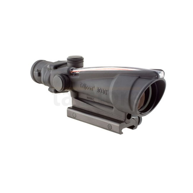 Das 3x35 ACOG-Zielfernrohr bietet ein zweifach beleuchtetes Absehen mit Glasfaser und Tritium für einen hellen Zielpunkt bei jeglichen Lichtverhältnissen. Das Absehen ist für Kaliber .308 / 7.62 auf 800m kalibriert wobei die Spitze auf 100m den Nullpunkt darstellt. Die Basis des Absehens ist 5.53 MOA breit, was ca. 50cm auf 30mm entspricht.