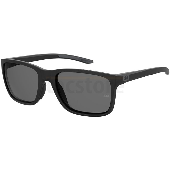 Die Under Armour Hustle Sonnenbrille kombiniert sportliches Design mit funktionaler Technologie. Mit mattschwarzem Rahmen und grauen polarisierten Gläsern reduziert sie Blendeffekte und bietet klare Sicht bei Sonne und Outdoor-Aktivitäten.