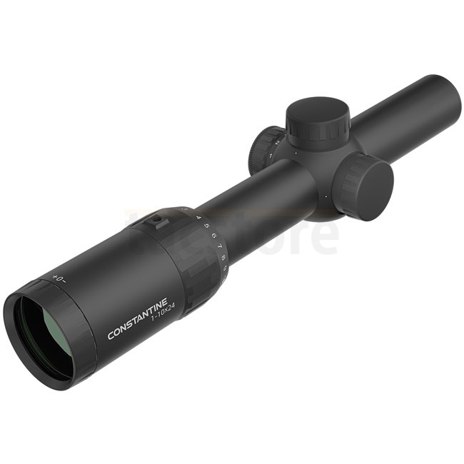 Kompaktes und vielseitiges Zielfernrohr mit 1-10x Vergrößerung und einem Objektivdurchmesser von 24mm. Ausgestattet mit VOS-TMOA Absehen, einstellbarer Beleuchtung und robuster 6061-T6 Aluminiumkonstruktion. Ideal für verschiedene Schießszenarien.