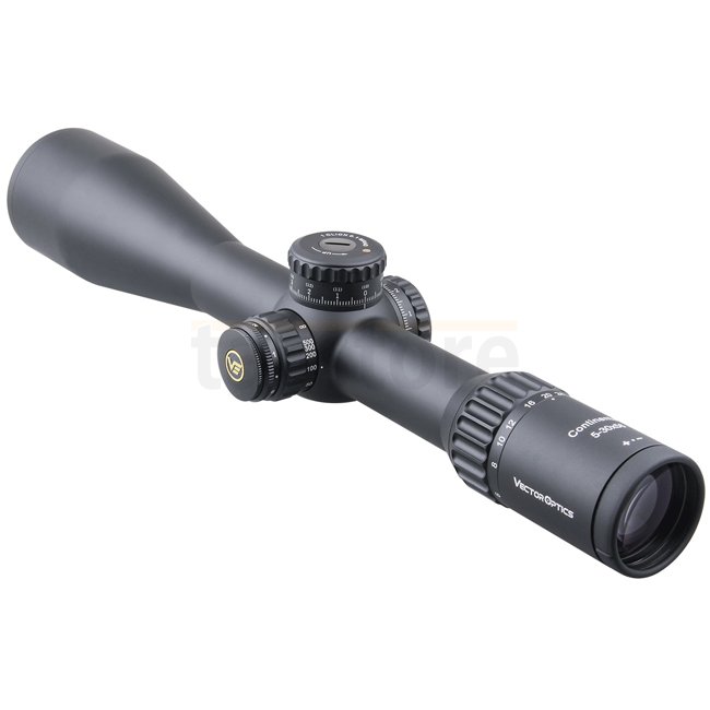 Dieses Vector Optics Continental Zielfernrohr verfügt über einen Vergrößerungsbereich von 5-30x, einen Objektivdurchmesser von 56mm und einen Augenabstand von 100mm. Mit einer 30mm Rohrgröße bietet es ein Sichtfeld von 7,5 bis 1,2m bei 100m. Das Zielfernr