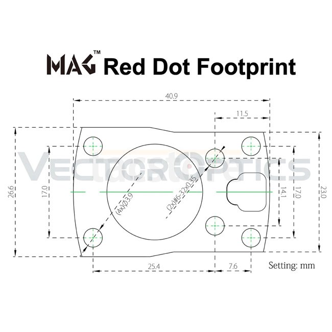 Diese leichte Cantilever-Montage hebt MAG/RMS-C-Absehen auf 1/3 Co-Witness-Höhe auf 21 mm Weaver-Schienen an. Gefertigt aus robustem Polymer mit matter Oberfläche, bietet sie eine Sattelhöhe von 28 mm und eine Schienenlänge von 36 mm. Die Montageplatte misst 40,8 mm × 23 mm. Gewicht: 23 g.