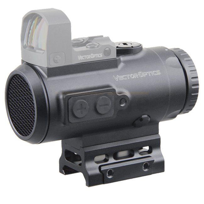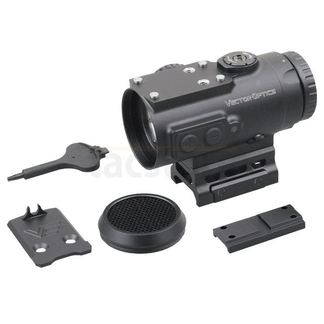 Kompakt und präzise, das Vector Optics Paragon 4x24 Micro Prism Zielfernrohr bietet eine 4-fache Vergrößerung und ein 24mm Objektiv. Es verfügt über ein VEPS-MBR geätztes Glasabsehen, 1 MOA Verstellgenauigkeit, 10 Helligkeitsstufen und ein rot beleuchtete