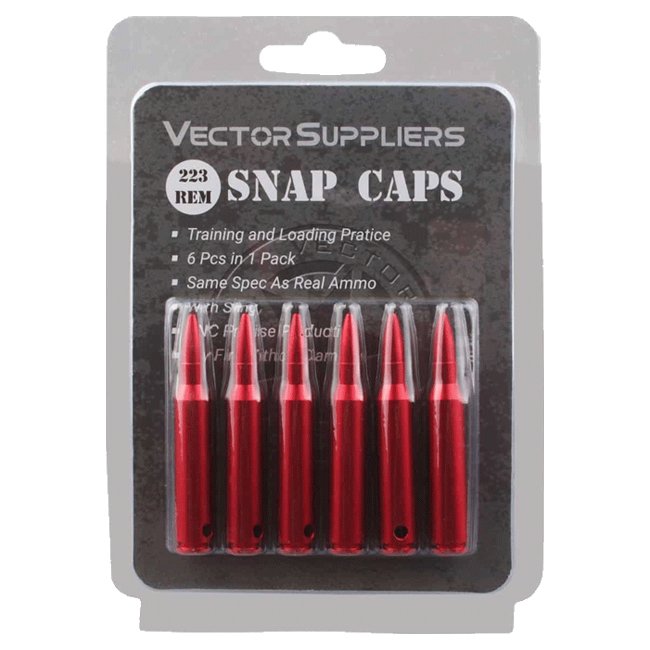 Verbessern Sie Ihre Schießfähigkeiten mit den Vector Optics Übungslade- und Trainingsattrappen 223 Rem. Enthält 6 Aluminiumrunden mit weichen Silikonanzündern für Kaliber .223 / 5.56.