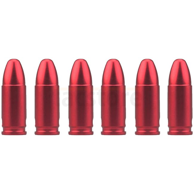 Vector Optics Übungs-Lade- und Trainings-Dummy-Runden 9mm - Set aus 6 Aluminium-Dummy-Runden mit weichen Silikon-Zündhütchen.