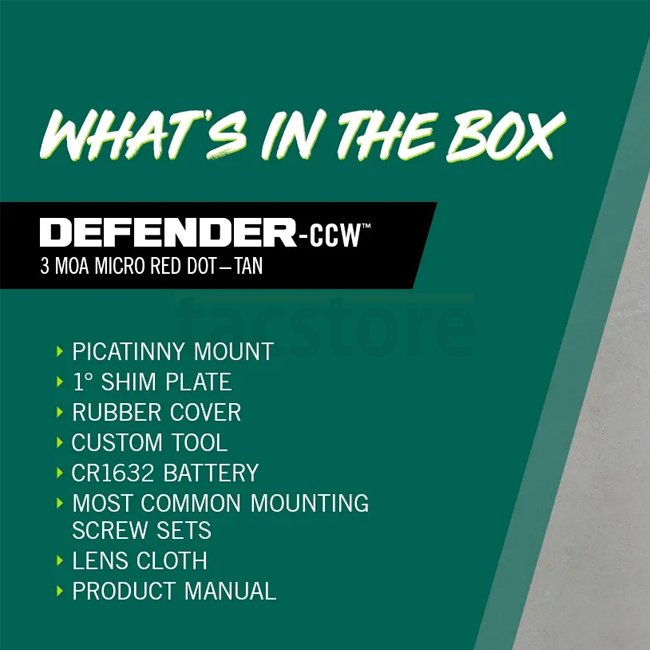 Der Defender‑CCW ist speziell für Concealed Carry und alltägliche Nutzung entwickelt. Sein kompakter Aufbau und das schlanke Shield RMS‑Footprint sorgen für unauffälligen Sitz auf Pistolen. Die hartbeschichtete asphärische Linse liefert ein klares, verzerrungsfreies Bild.