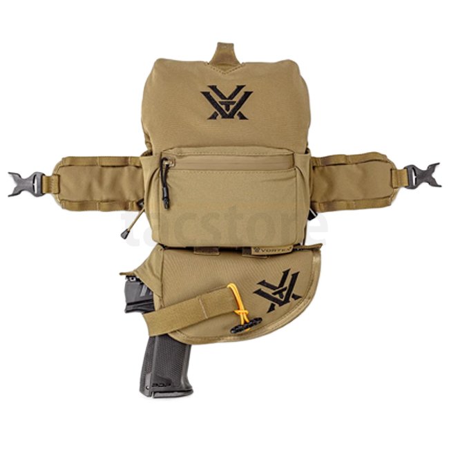 Das Vortex GlassPak Pro Holster ermöglicht komfortables Tragen und schnellen Zugriff auf deine Kurzwaffe – ideal für den Einsatz in unvorhersehbarer Wildnis. Es ist kompatibel mit dem GlassPak Pro Fernglas-Tragesystem.
