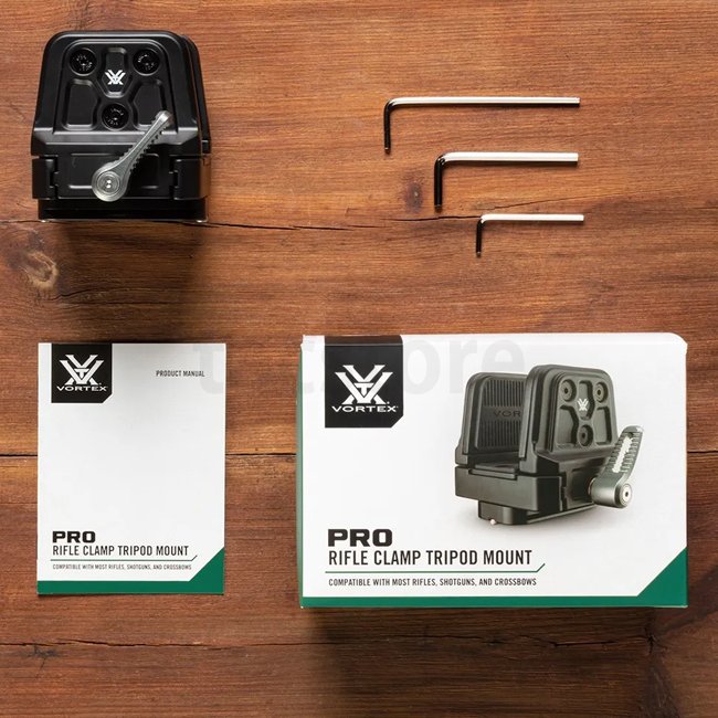 Vortex Pro Gewehrklemme Stativhalterung: Stabile Gewehrauflage für präzises Schießen. Montage ohne Werkzeug, sichere Befestigung für Gewehre, Schrotflinten oder Armbrüste. Leichtes Magnesiummaterial, Öffnungsbreite von 1,3"–3,2", maximale Belastung 20 kg,