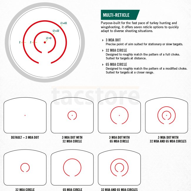 • Multi-Reticle: Anpassbar an unterschiedliche Schiesssituationen.