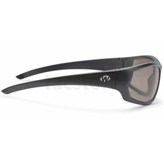 Walkers IKON Vector Schießbrillen in Smoke mit vollem Rahmendesign, Schlagfestigkeit und ANSI Z87.1-2010-Konformität. Enthält einen matt schwarzen gummierten Rahmen, TPR Flex-Gummi-Bügel, eine EVA-Schaumnasenstütze, Lanyard-Schlaufen und mehr. Mikrofaserl