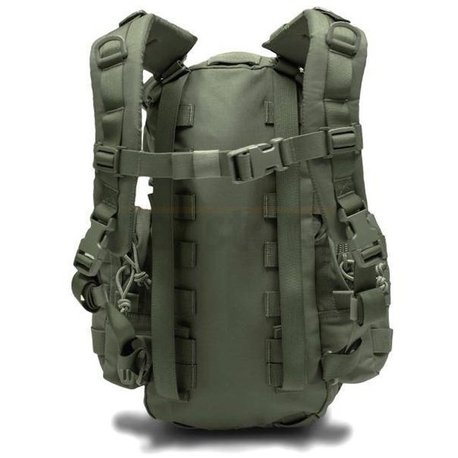Auf der Aussenseite des Hauptfachs ist ein voll einstellbarer Klapp Beutel angebracht, der dazu bestimmt ist, einen Helm, eine Jacke oder sonstige Kleidung usw. aufzunehmen. Das HCP kann mit zwei gepolsterten Schultergurten getragen werden, oder, wenn diese entfernt werden, kann es auch auf jegliche MOLLE Oberflächen montiert werden.