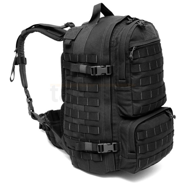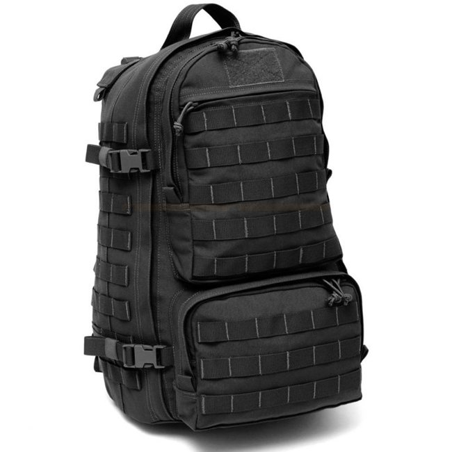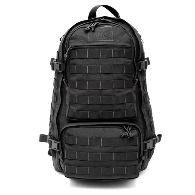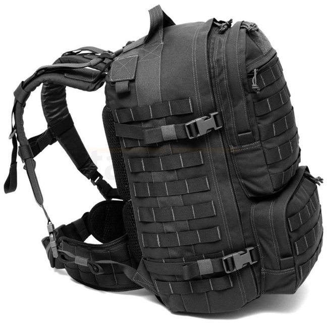 Krieger Elite Ops Predator Pack - Schwarz: Ein vielseitiger Rucksack mittlerer bis großer Größe mit dem Komfort des „Clamshell“-vollständig erweiterten Öffnens. Ausgestattet mit gepolsterter Lendenstütze und MOLLE-Gürtel für Stabilität. Verfügt über mehre