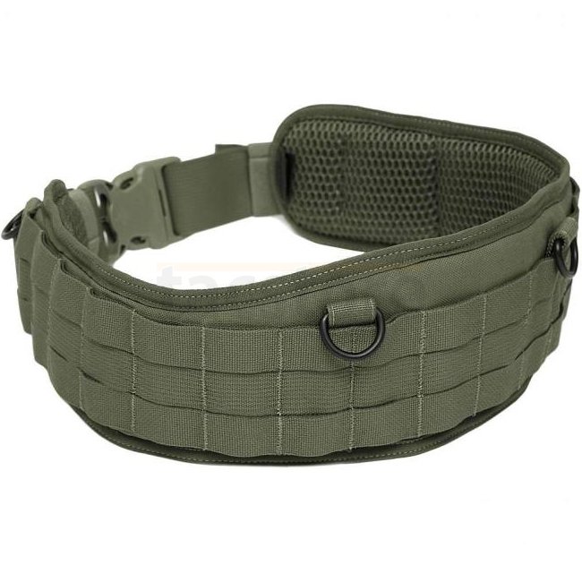 Kriegerverbesserter PLB-Gürtel in Ranger-Grün. Zusätzliche gepolsterte Abschnitte für anhaltenden Komfort. 4x I.T.W. D-Ringe für Anhänge. Erweiterte Lendenstütze. Schnellsystem zur Einstellung. Eine Größe passt den meisten.