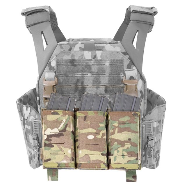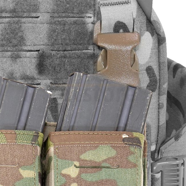 Die Warrior Laser Cut Detachable Front Panel Triple Snap Mag Pouch ist ein abnehmbares Frontpanel, das speziell für die Aufnahme von drei 5.56-mm-Magazinen entwickelt wurde. Die Magazine werden durch thermoplastische Einsätze sicher gehalten, die einen festen Halt bieten und gleichzeitig ein schnelles, dynamisches Nachladen mit nur einem Zug ermöglichen.