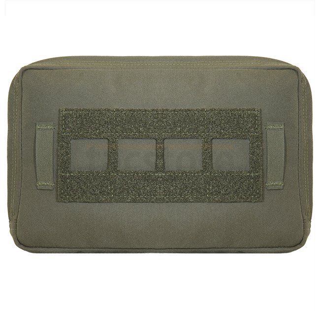 Im Inneren befinden sich drei elastische Schlaufen an der Rückwand zur Sicherung von 5.56mm Magazinen sowie weitere elastische Halterungen an der Vorderwand zur geordneten Aufbewahrung von medizinischer Ausrüstung.