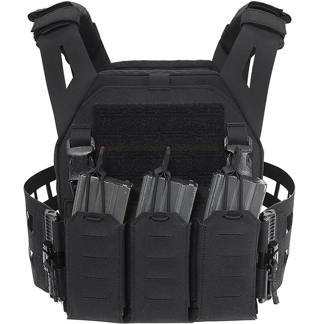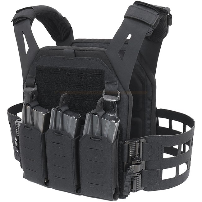 Warrior Laser Cut LPC Low Profile Carrier in Schwarz M ist ein vielseitiges taktisches Produkt mit Laserschnitt-Design, thermischen Pads, Schnellverschlussclips und mehr.