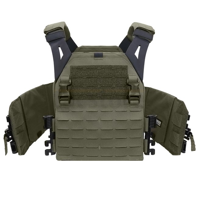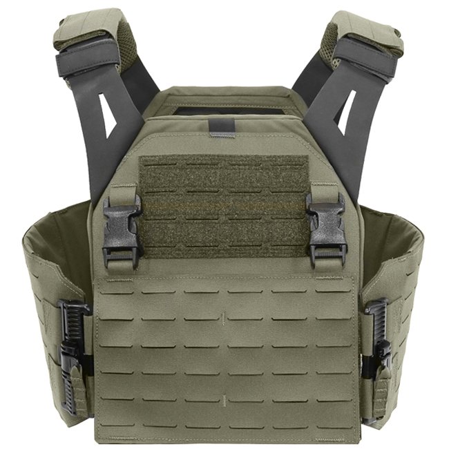 Krieger Laser Cut LPC Low Profile Carrier feste Seiten V1 in Ranger Grün. Laser geschnitten, thermische Pads, Schnellverschlussclips, austauschbares Frontpaneel, Admin-Tasche, abnehmbare Schulterpolster. Niedriges Profil mit der Möglichkeit, Seitenplatten