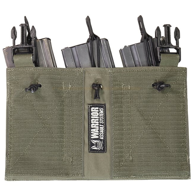 Die Warrior Laser Cut Triple Bungee 5.56 Magazintasche in Ranger Grün ist ein abnehmbares Frontpanel, das dazu entworfen wurde, drei 5.56 mm Magazine sicher zu halten. Elastische Bungee-Kordeln und eine Hypalon-Auskleidung gewährleisten die Magazinhalteru