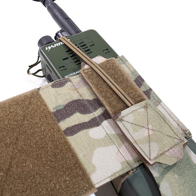 Die Laser Cut Wing Klettverstellbare Funkgerätetasche (Linke Seite) wurde entwickelt, um eine Vielzahl von Funkgeräten sicher aufzunehmen. Ihr Klett- und Bungee-Verschluss ist höhenverstellbar und sorgt für einen festen Sitz bei unterschiedlichen Funkgerätgrößen. Die Tasche wird unter der Frontplatte von Plattenträgern befestigt, während die Seitenflügel über die Tasche geschlossen werden. Dadurch bleibt das Funkgerät eng am Körper des Trägers, reduziert das Volumen und minimiert das Risiko von Hängenbleiben.
