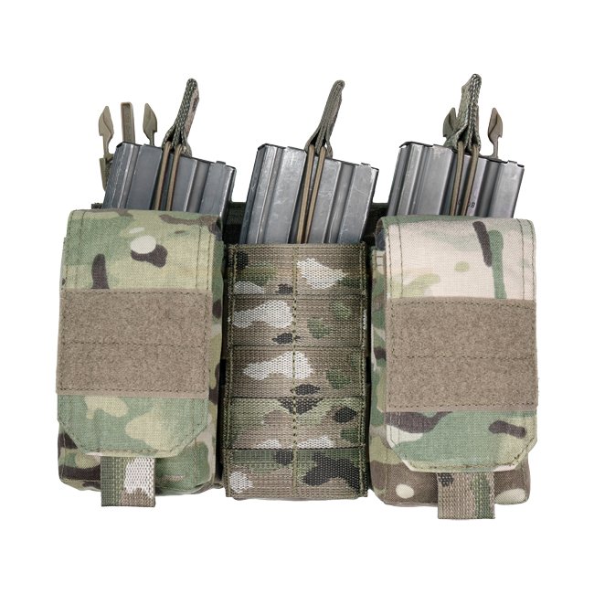 • Drei Magazintaschen mit verstellbarer Bungee-Retention für verschiedene Magazintypen.