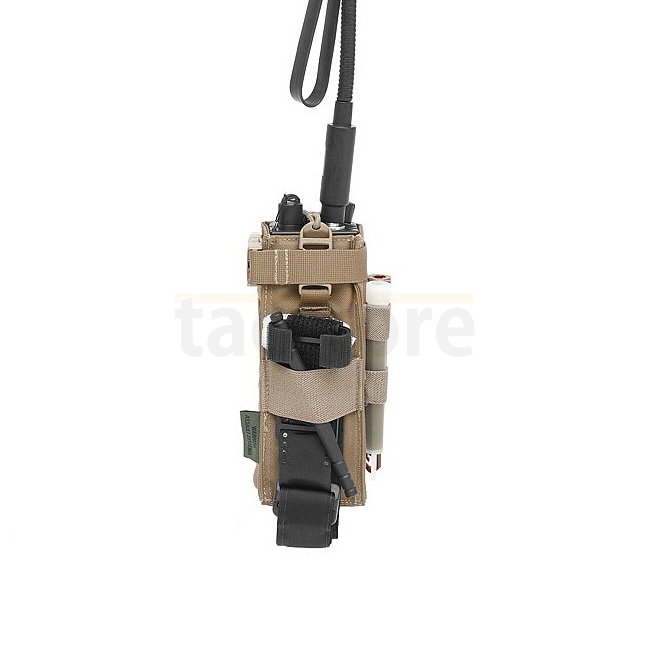 Die Warrior Gen 2 MBITR Pouch ist so konzipiert, dass die Radiosteuerungen dem Bediener zugewandt sind, was den einfachen Zugriff auf die Tasten, Anzeigen und den Bildschirm ermöglicht. Sie ist kompatibel mit dem PRC-148 Funkgerät. An der Vorderseite befindet sich ein 5 cm breites elastisches Band, das die Mitnahme eines C.A.T. ermöglicht. Die seitlichen elastischen Schlaufen bieten Platz für bis zu vier Chemlights oder 12-Gauge-Schrotpatronen, die beispielsweise für Türöffnungsmanöver genutzt werden können.