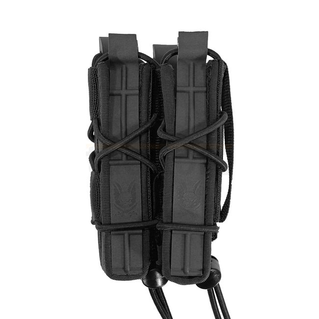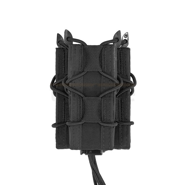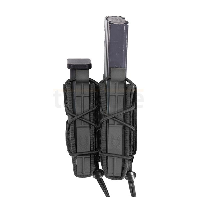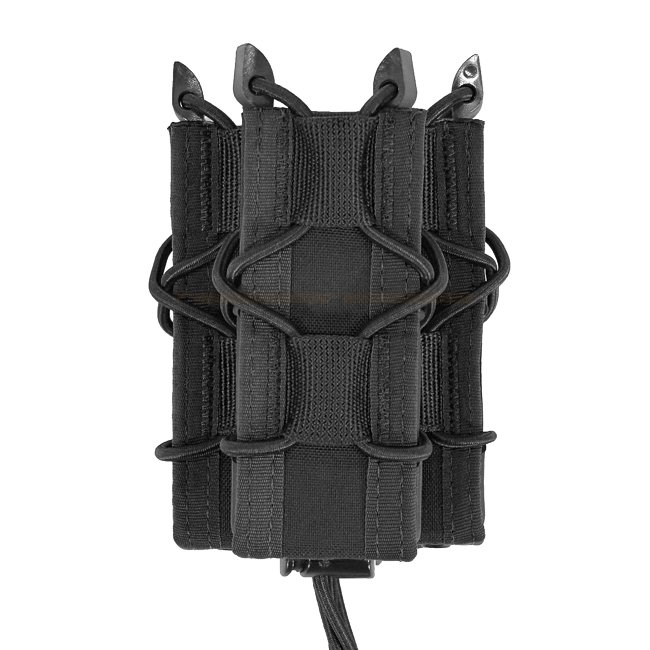Die Warrior Single Quick Mag Tasche ist eine vielseitige Magazintasche, die für verschiedene 5.56mm Magazine wie P-Mags sowie 7.62mm x 39mm AK-Magazine, M14- und FAL-Magazine geeignet ist. Diese Version verfügt über eine zusätzliche, vollständig anpassbare Pistolenmagazintasche an der Vorderseite, die Platz für verschiedene Pistolenmagazine, Taschenlampen, Multi-Tools und Schlagstöcke bietet. Beide Taschen können mithilfe seitlich geführter elastischer Shock-Cords in der Größe angepasst werden. Optional sind Bungee-Retention-Laschen für zusätzliche Sicherheit verfügbar.