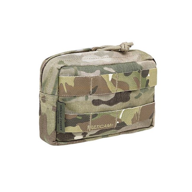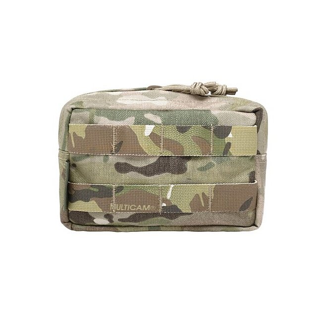 Der Warrior kleine horizontale Utility Pouch - Multicam ist eine kompakte Mehrzwecktasche mit einem Fassungsvermögen von 1,6 Litern für Plattenträger, Chest Rigs und MOLLE-kompatible Ausrüstung.