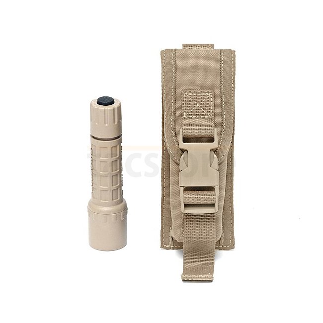 Kompakte Warrior kleine Taschenlampentasche in Coyote-Farbe, kompatibel mit MOLLE-System für eine praktische Befestigung.