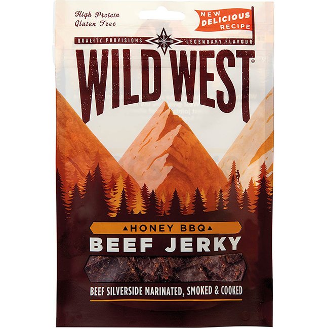 Marinierte Unterschale vom Rind, geräuchert und gegart Zutaten: Rindfleisch (135g Rindfleisch pro 100g Beef Jerky) brauner Zucker, Wasser, Tomatenmark, Honig (2%) Meersalz, Sojasauce (Wasser, Soja-Bohnen, Salz, Essig), Apfelweinessig, Ananaskonzentrat, Blacker Pfeffer, Aprikosenpüree, getrockneter Knoblauch, Apfelkonzentrat, Gewürze, getrocknete Zwiebeln, Kräuter, Antioxidationsmittel: Natriumascorbat, Konservierungsmittel: Natriumnitrit Allergene: Soja Nährwerte pro 100 g: Brennwert in kJ/kcal: 1333/308 Fett 3,2 g, davon gesättigte Fettsäuren 1,3 g Kohlenhydrate 39,6 g, davon Zucker 38 g Ballaststoffe 1,1 g Eiweiss 29,6 g, Salz 3,4 g Inhalt: 70 g