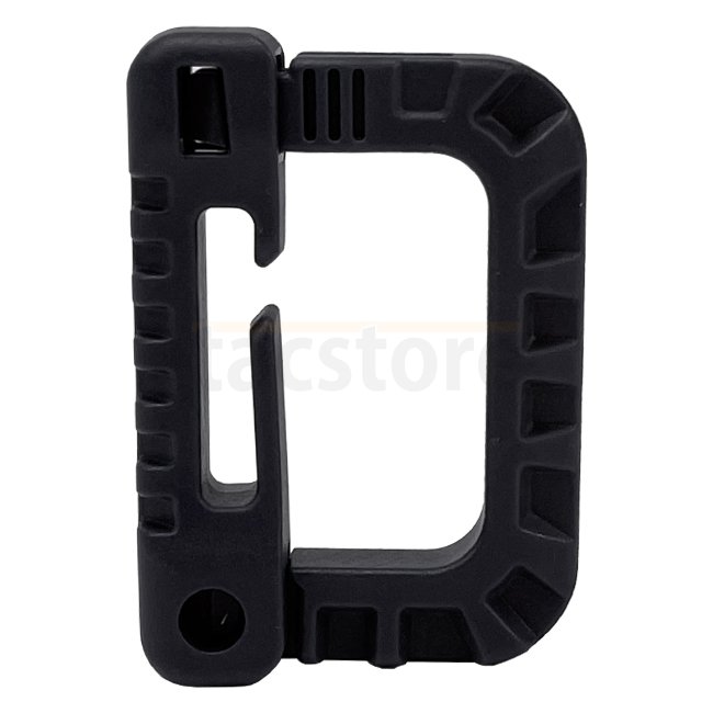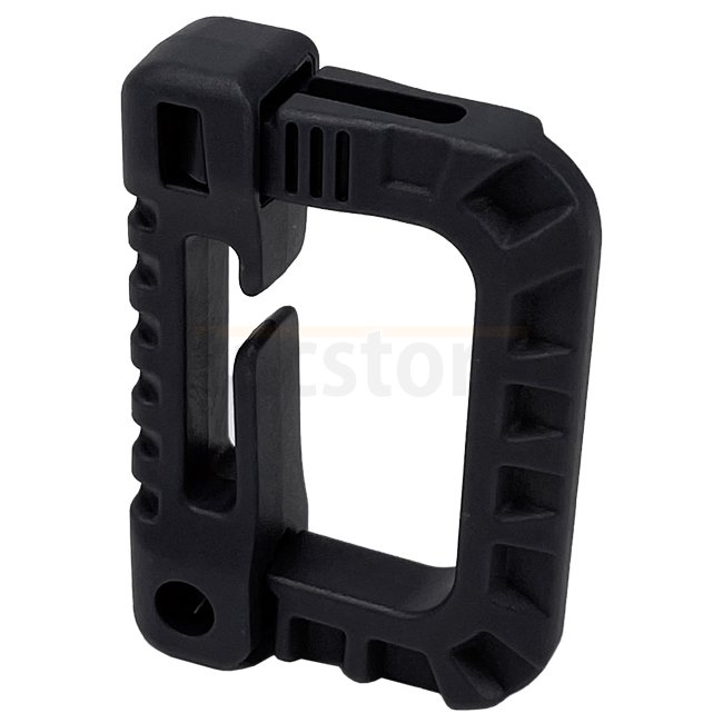 Befestigen Sie schnell Ausrüstung am MOLLE-System mit dem vielseitigen Woojin Kunststoffkarabiner in Schwarz. Abmessungen: 50 x 38 x 12 mm. Unterstützt Gurtband bis zu 25 mm / 1 Zoll Breite. Nicht geeignet für Klettern oder Rettungsmissionen!
