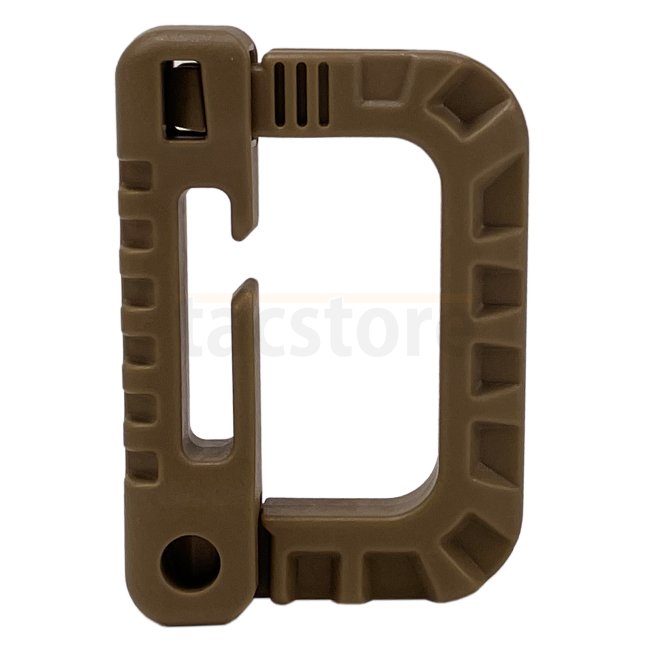 Sichern Sie Geräte mit dem Woojin Kunststoffkarabiner - Coyote. Nicht zum Klettern oder für Rettungsmissionen geeignet!
